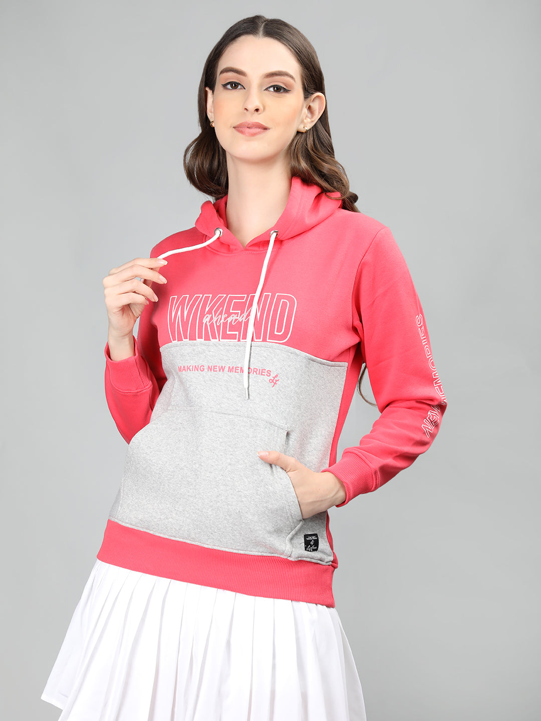 Certainly! Elevate your style with a pink hoodie by exploring these versatile options. For a casual look, pair it with light-wash jeans and trendy sneakers. Opt for a sporty vibe with matching pink joggers and athletic shoes. Combine it with black leggings for a cozy athleisure ensemble. To add a touch of sophistication, layer the hoodie under a leather jacket with tailored pants. Experiment with contrasting colors or go for a monochromatic look with varying shades of pink. What's your preferred style for the pink hoodie?